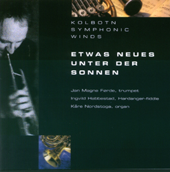 Kolbotn Syphonic Winds and their conductor Erlend Tunestveit have a strong tradition in championing contemporary music, and their latest CD, Etwas Neues Unter der Sonnen (SONCD 9002), shows them once again on top form. The title refers to Kjell Habbestads highly original work featuring the Hardanger fiddle as solo instrument. Folk music, jazz, aleatoric passages blended with a tasteful modernistic language (no frightening of horses!) certainly fascinated me. Voices from the Script (commissioned by the band) is a deeply felt personal work based on biblical texts. The band blends beautifully with organ and electronics in this very evocative piece. In Hornhavet (also a commission from the band), Jan Magne Førdes lyric trumpet playing is well supported by the band. The band parts are fairly simple, with traditional instrumentation and chords, well suited for large school bands. ....I find this adventurous CD highly enjoyable.